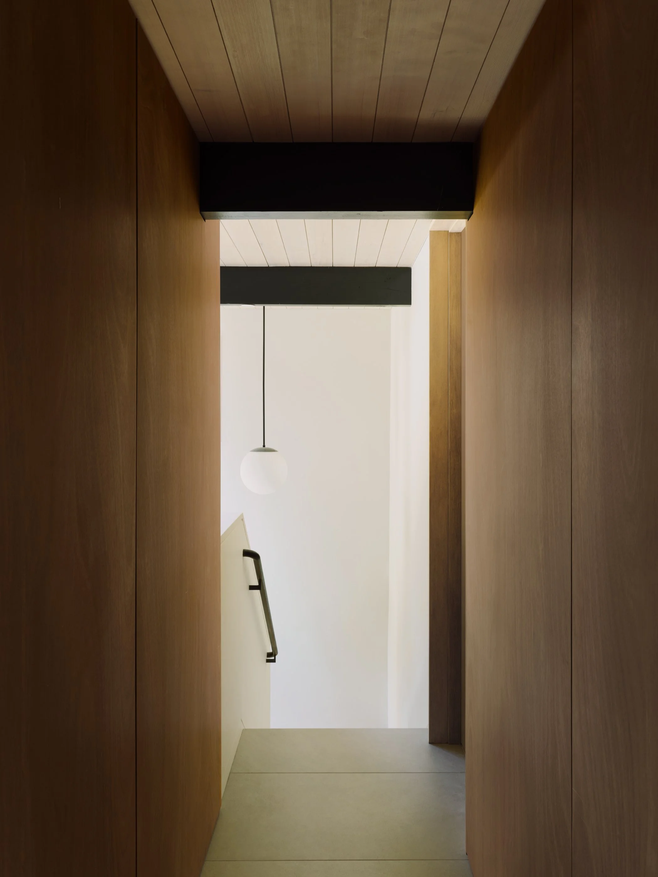 Perched within the steep topography of Diamond Heights, this project reconsiders an existing Eichler residence through the addition of a fourth-floor volume—an intervention shaped as much by climate and terrain as by the rituals of daily life. From this elevated site, the city reveals itself intermittently, alternately obscured and unveiled by wind and fog. Sunlight, coastal air, and Karl the Fog move through the house with regular insistence, and the architecture responds with a measured clarity—designed for consistency, shelter, and endurance within an ever-shifting environment.